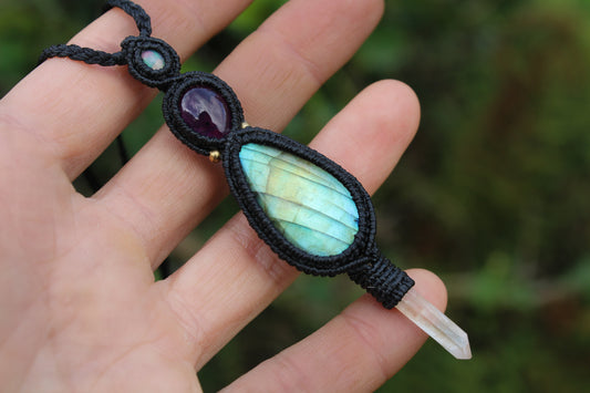Micro macrame pendant | Opal, Amethyst, Labradorite & Quartz