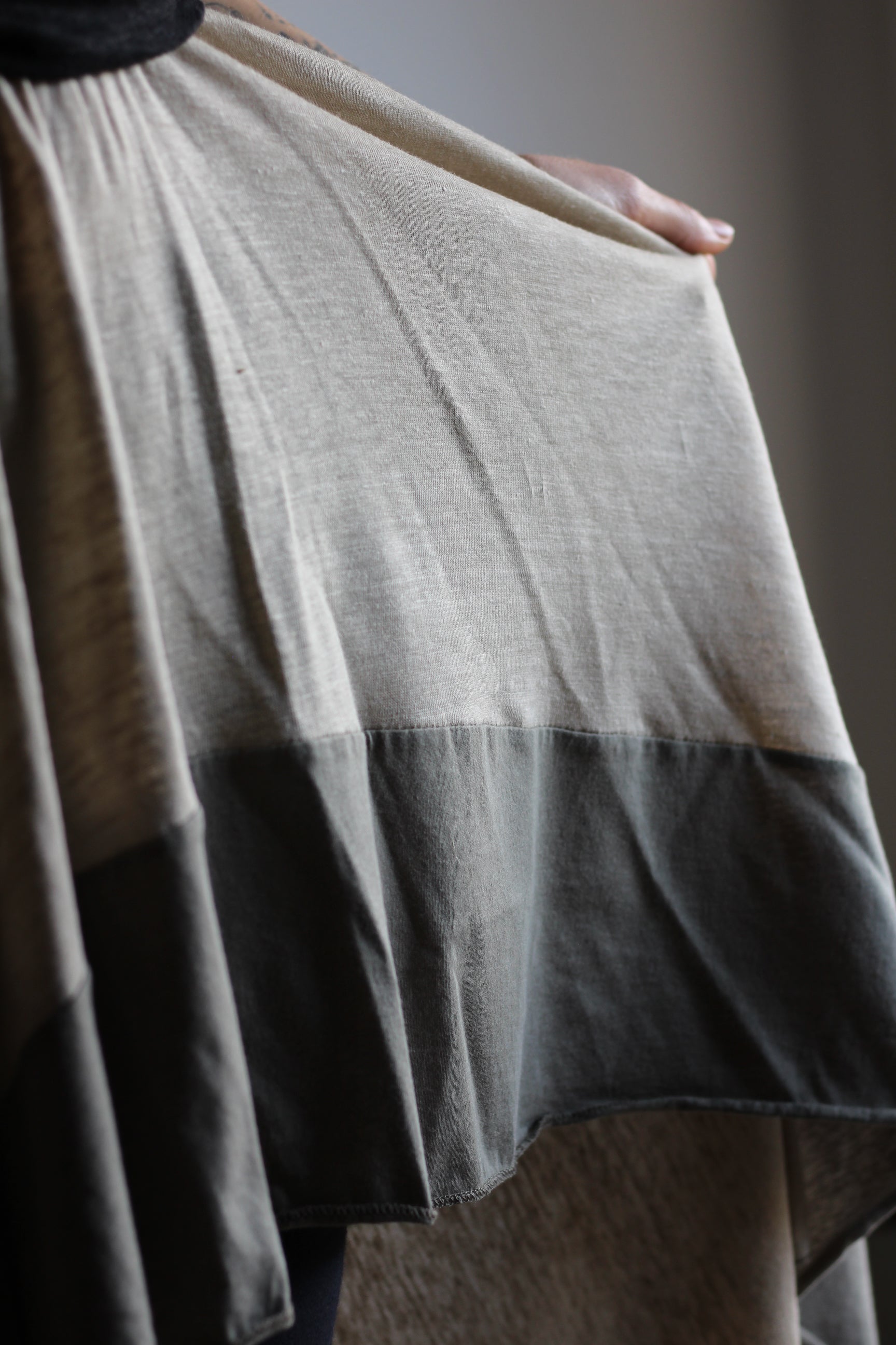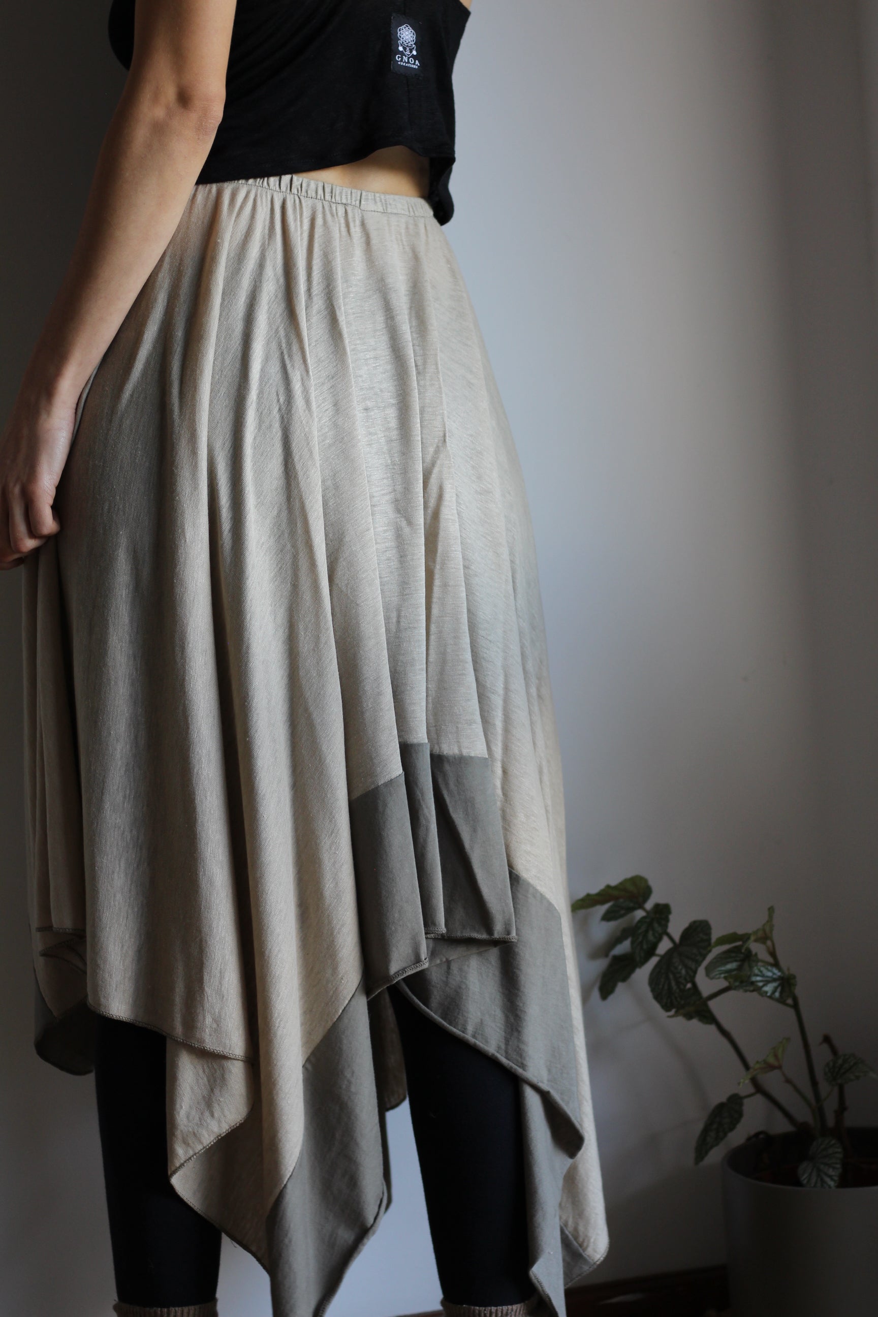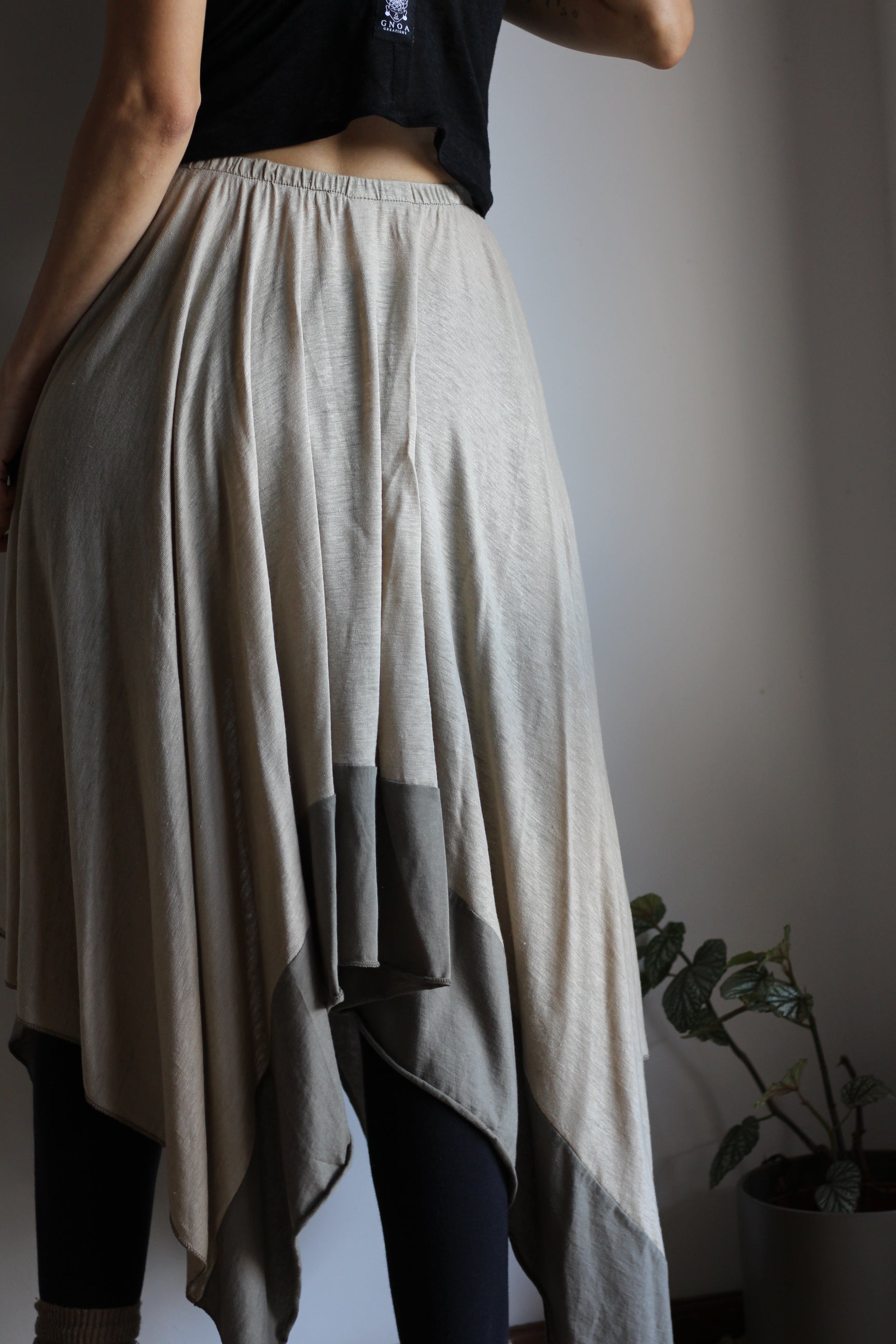 100% linen long skirt with asymmetric shape with 100% cotton