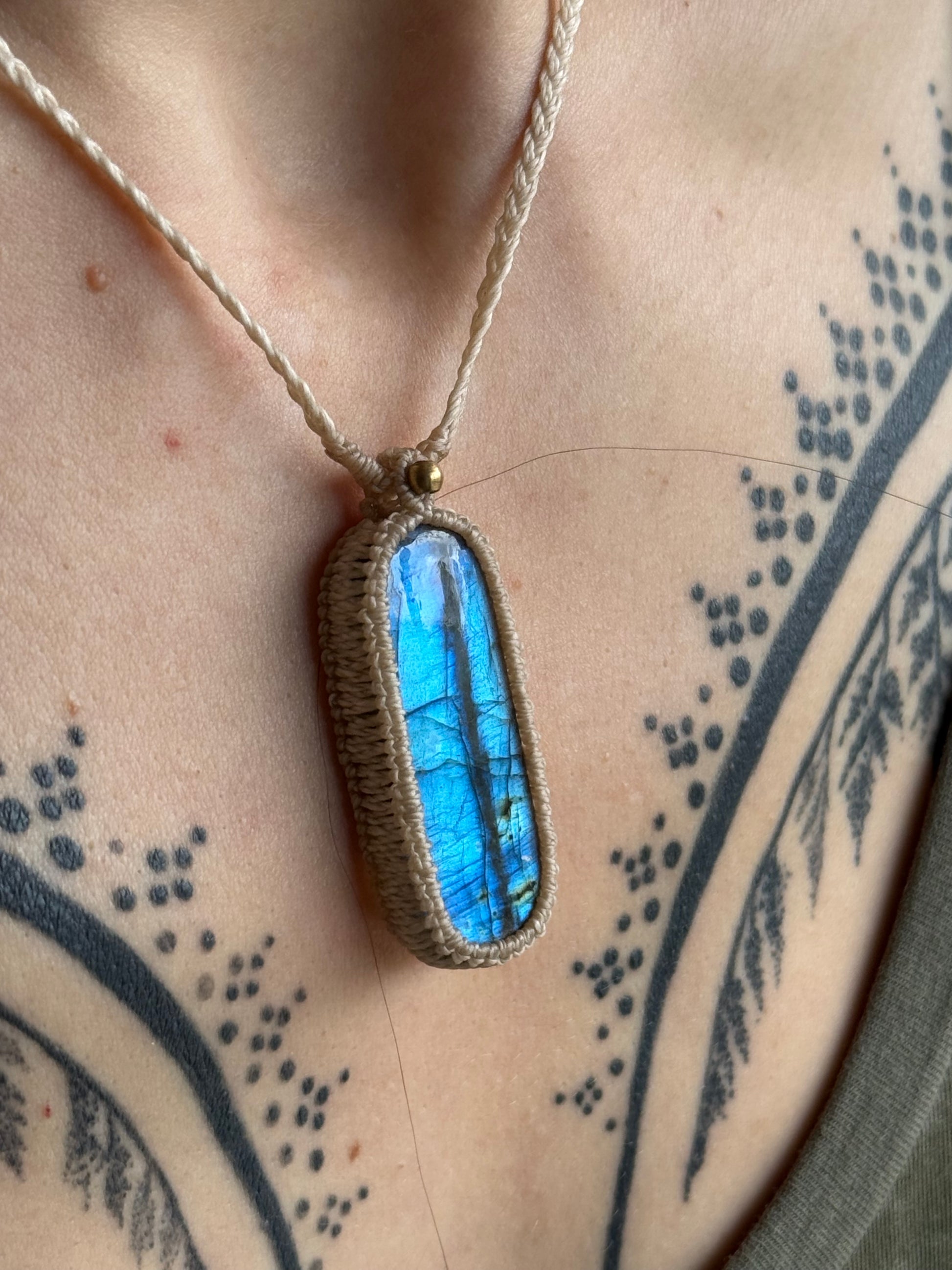 Micro macrame pendant with gorgeous blue labradorite