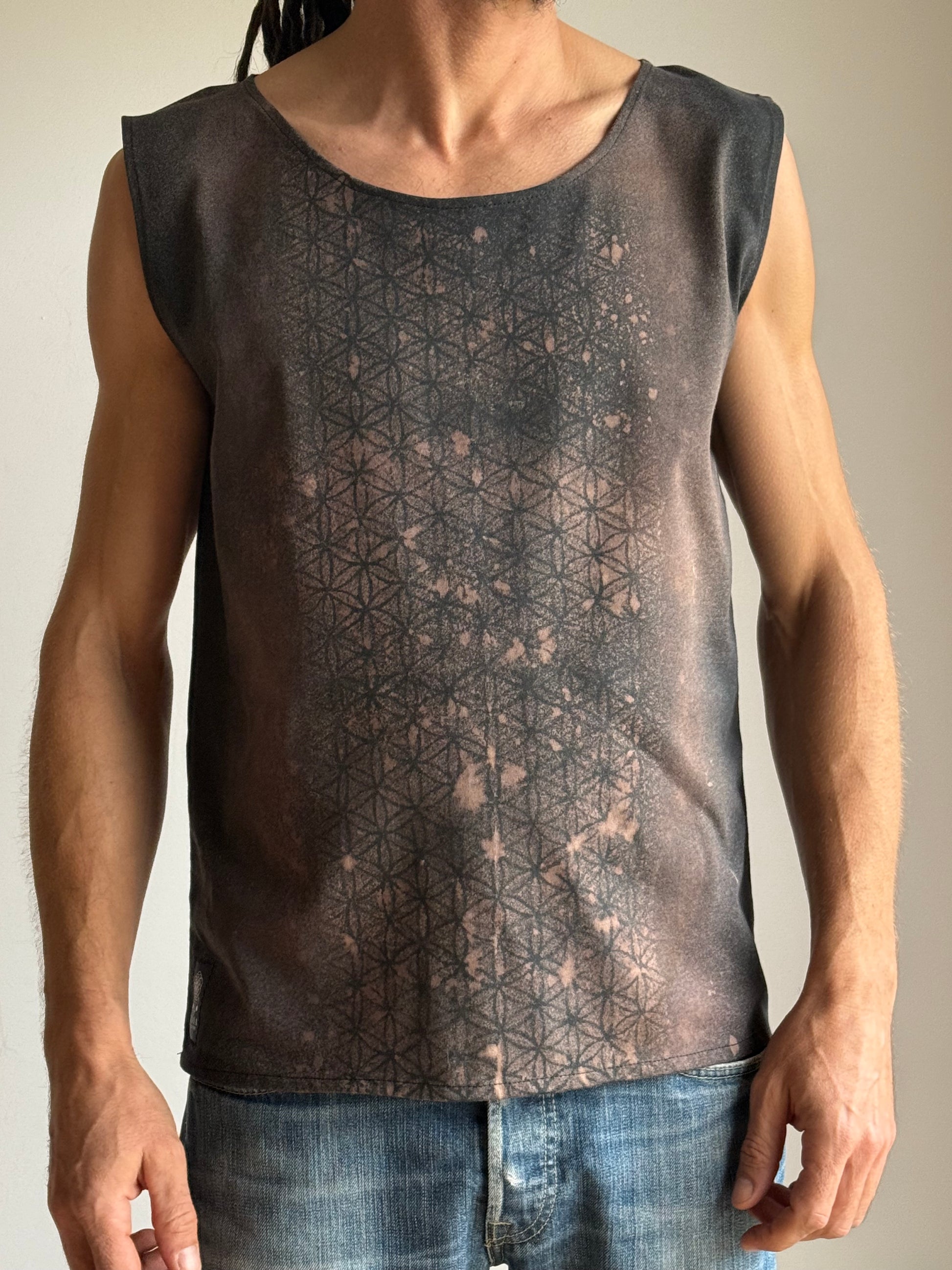 Sleeveless shirt with sacred geometry pattern