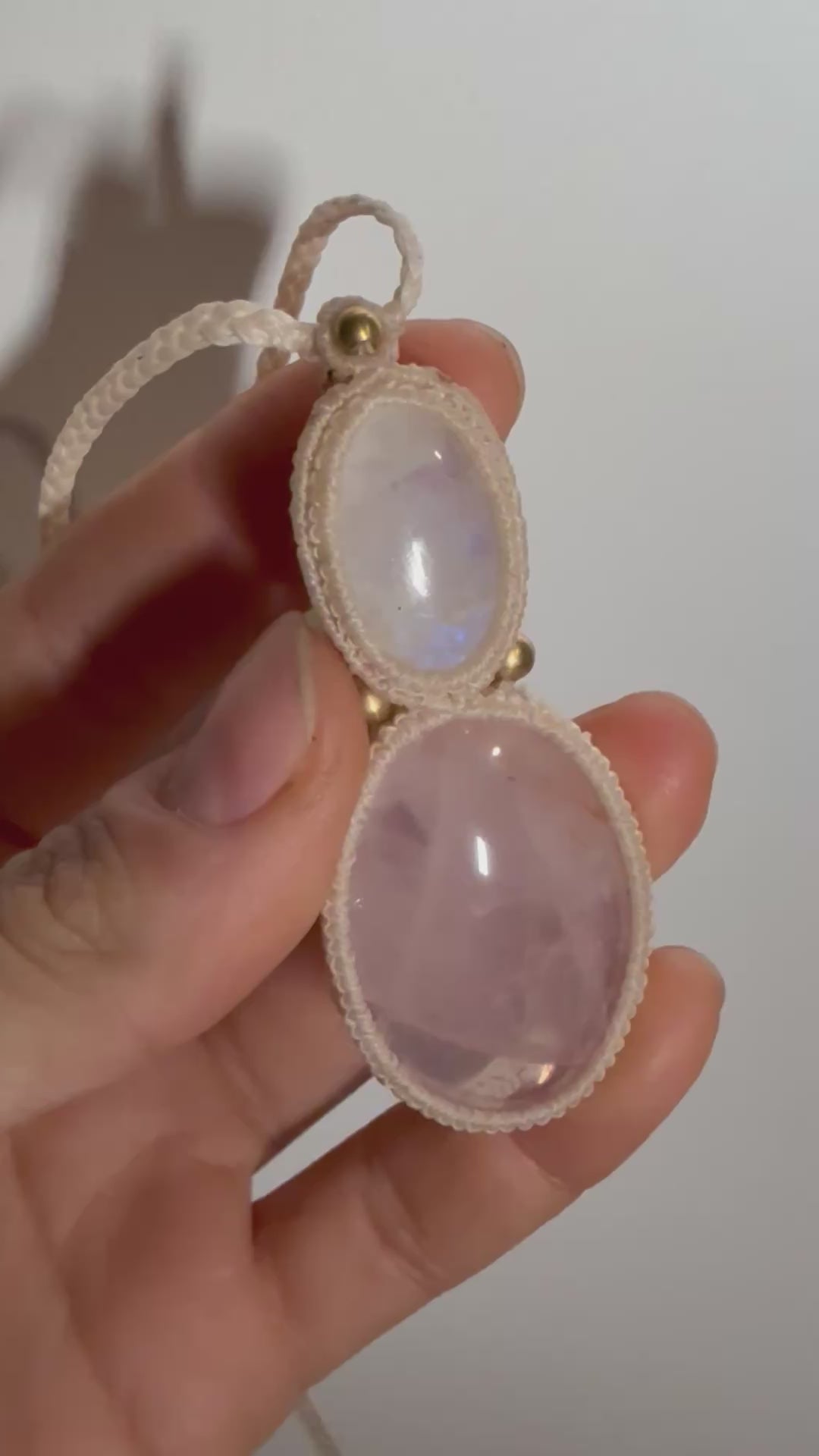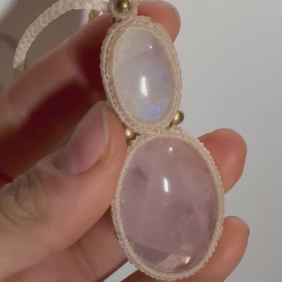 Micro macrame pendant |Moonstone & Rose Quartz