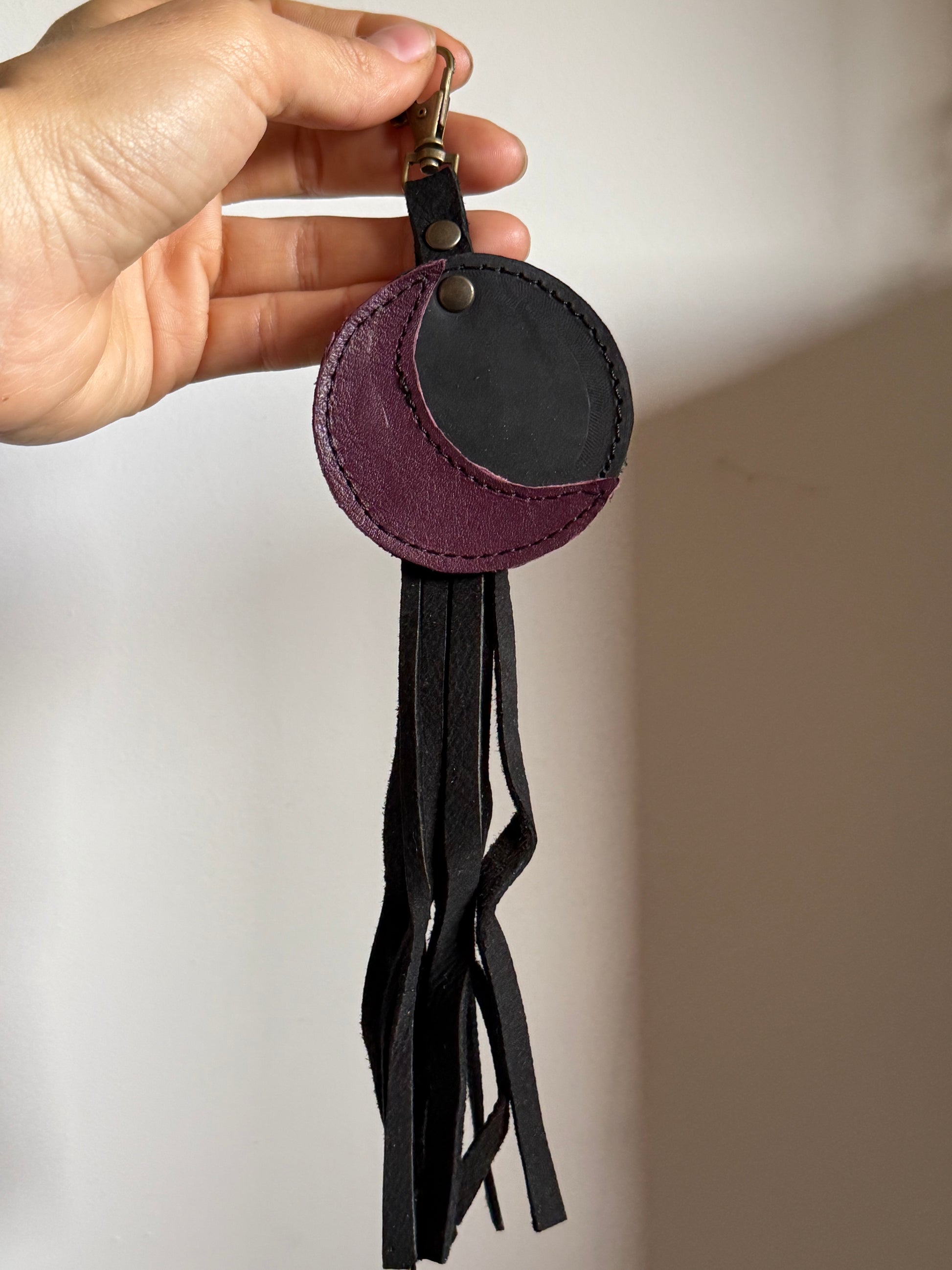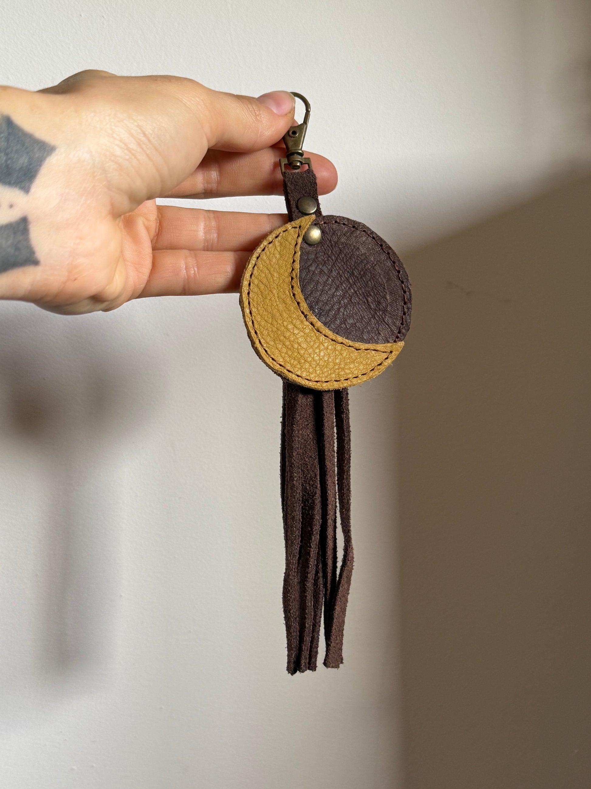 Moon Keychains are made with the leather leftovers from the bags
